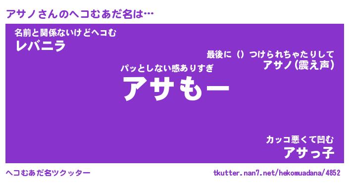 | ファンタジー風あだ名 | 『アサフェル』『エターナルアサノー』 |