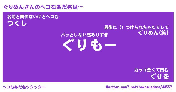 | 意味不明あだ名 | 『ペロリンぐりめん』『永久保存ぐりめん』 |