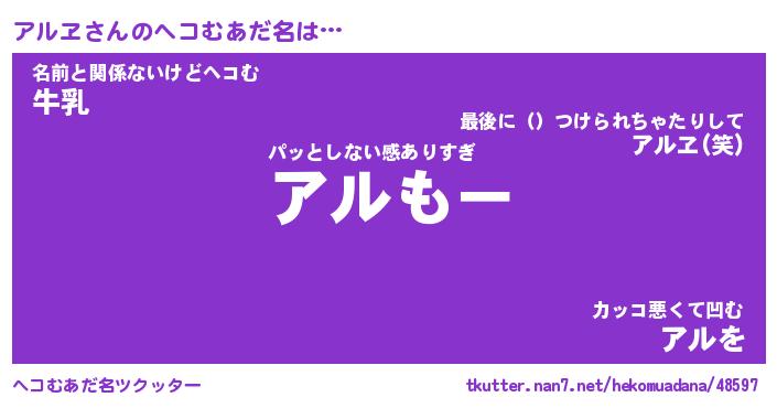 | ヒーロー風カッコイイあだ名 | 『スーパーアルヱ』『ウルトラアルヱマン』 |