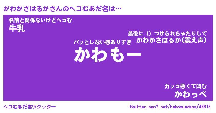 | ヒーロー風カッコイイあだ名 | 『スーパーカワカサハルカ』 |