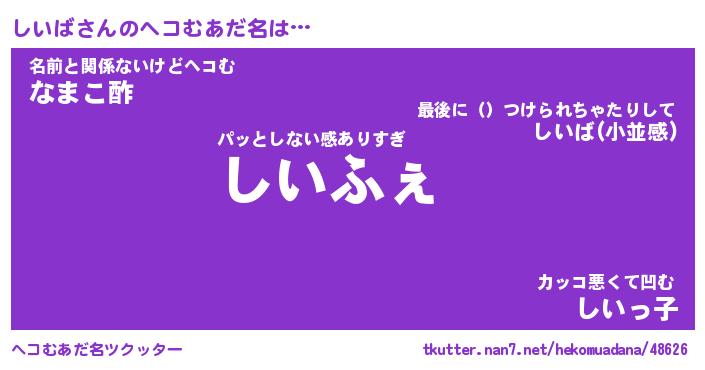 | 意味不明あだ名 | 『ペロリンしいば』『しいばフォーエバー』 |
