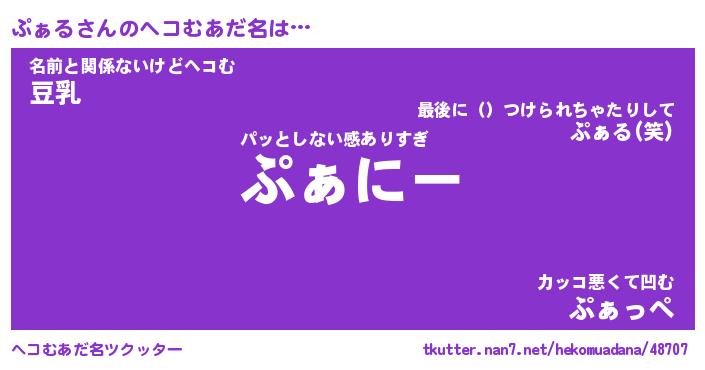 | ファンタジー風あだ名 | 『プァフェル』『エターナルプァルー』 |