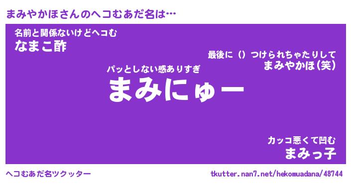 | ファンタジー風あだ名 | 『マミフェル』『エターナルマミヤカホー』 |
