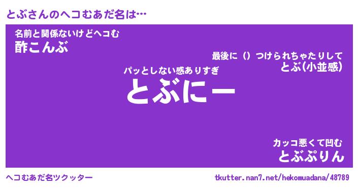 | ファンタジー風あだ名 | 『トブフェル』『エターナルトブー』 |