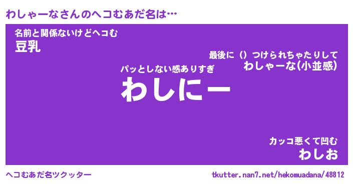 | ポケモン風あだ名 | 『ワシチュウ』『ワシャダネ』 |