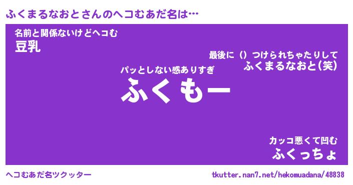 | 胡散臭い通販商品みたいなあだ名 | 『モテモテ間違いなし霊験あらたかなお札…その名も「ふくまるなおと」』 |