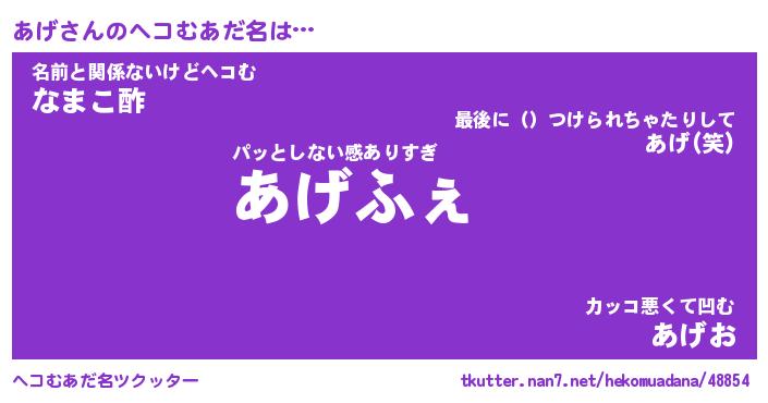 | 男性向けラノベタイトル風あだ名 | 『あげの憂鬱』『ノーゲーム・ノーアゲ』 |