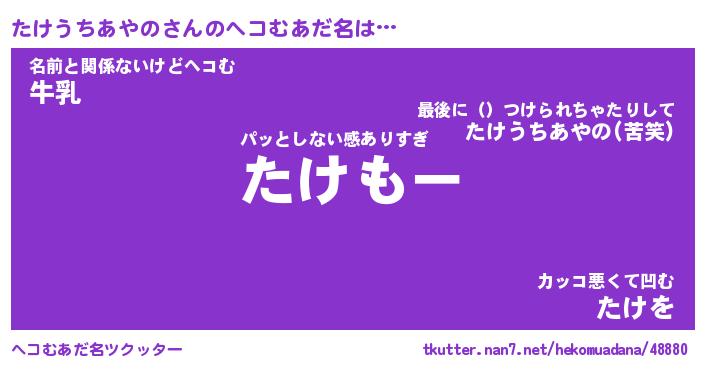 | 男性向けラノベタイトル風あだ名 | 『たけうちあやのの憂鬱』 |