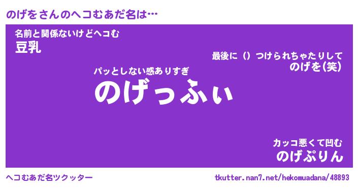 | 意味不明あだ名 | 『ペロリンのげを』『のげをフォーエバー』 |