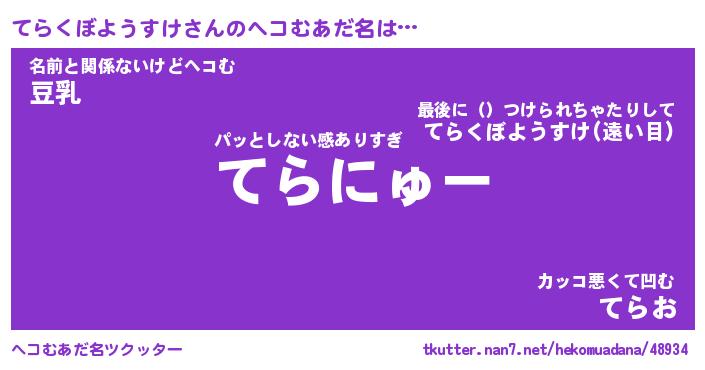 | ヒーロー風カッコイイあだ名 | 『スーパーテラクボヨウスケ』 |