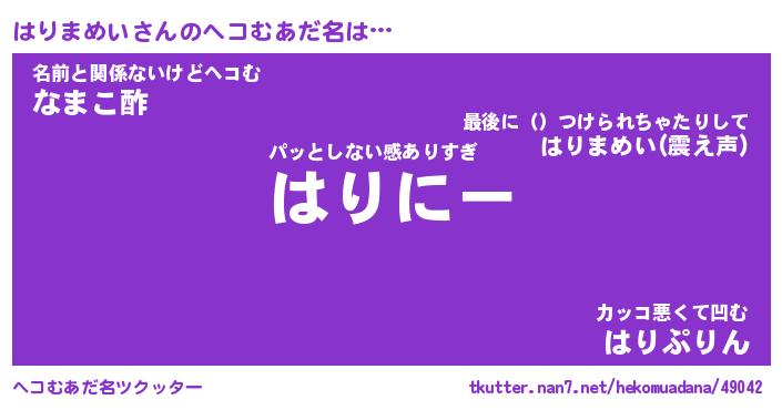 | ヒーロー風カッコイイあだ名 | 『スーパーハリマメイ』『幻影騎士ハリ』 |