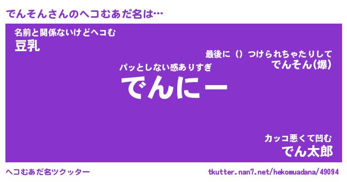 | 意味不明あだ名 | 『ペロリンでんそん』『永久保存でんそん』 |