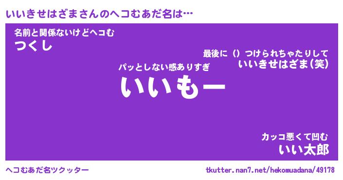 | 男性向けラノベタイトル風あだ名 | 『いいきせはざまの憂鬱』 |