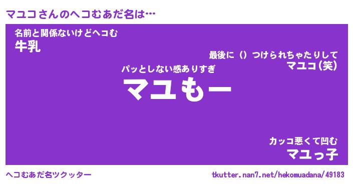 | ファンタジー風あだ名 | 『マユフェル』『エターナルマユコー』 |