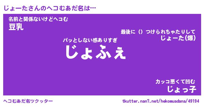 | 意味不明あだ名 | 『ペロリンじょーた』『永久保存じょーた』 |