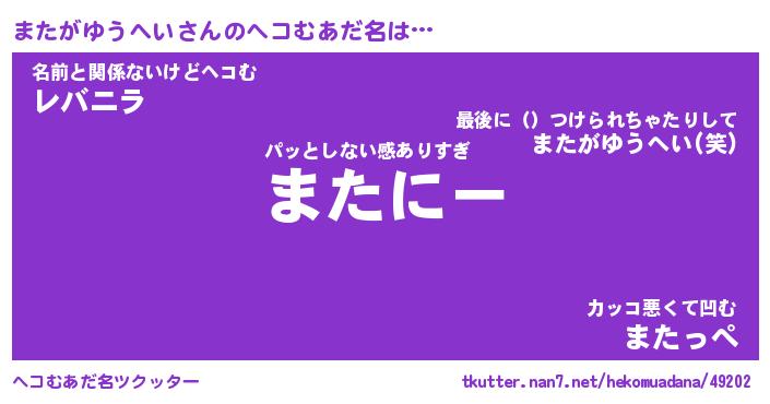 | 胡散臭い通販商品みたいなあだ名 | 『億万長者になれるブレスレット…その名も「またがゆうへい」』 |
