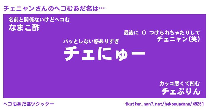 | 恥ずかしいあだ名 | 『プリティーチェニャン』『チェっちょ』 |