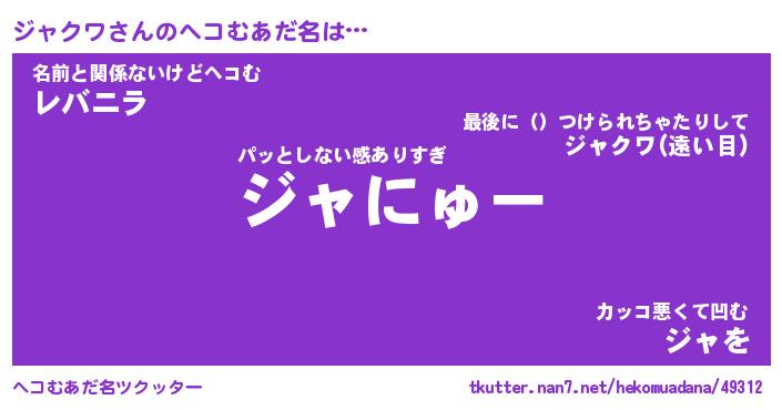 | 恥ずかしいあだ名 | 『プリティージャクワ』『ジャっちょ』 |