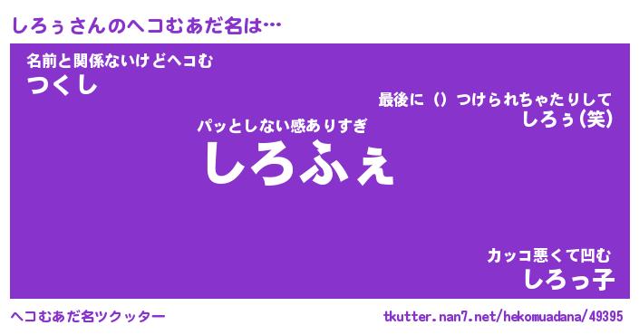 | ファンタジー風あだ名 | 『シロフェル』『エターナルシロゥー』 |