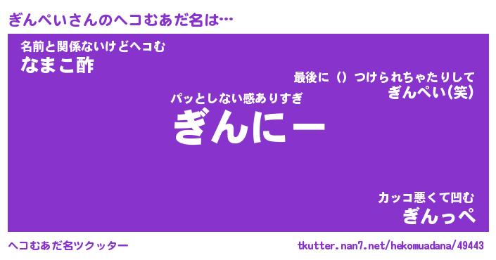 | 意味不明あだ名 | 『ペロリンぎんぺい』『永久保存ぎんぺい』 |