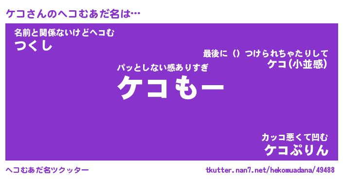 | 男性向けラノベタイトル風あだ名 | 『ケコの憂鬱』『ノーゲーム・ノーケコ』 |