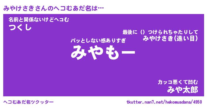 | ファンタジー風あだ名 | 『ミヤフェル』『エターナルミヤケサキー』 |
