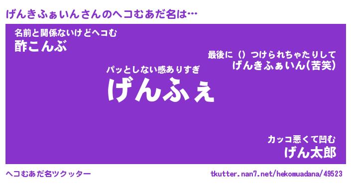 | 男性向けラノベタイトル風あだ名 | 『げんきふぁいんの憂鬱』 |