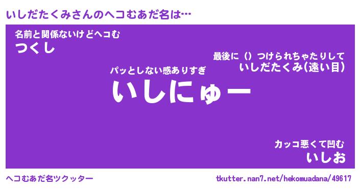 | 意味不明あだ名 | 『ペロリンいしだたくみ』 |