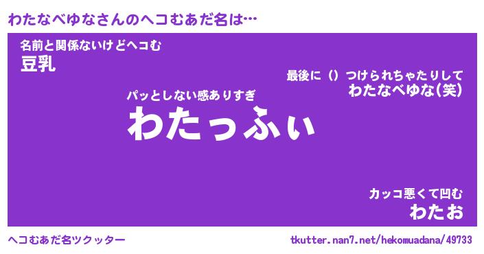 | 意味不明あだ名 | 『ペロリンわたなべゆな』 |