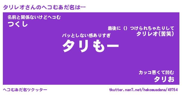 | 意味不明あだ名 | 『ペロリンタリレオ』『永久保存タリレオ』 |