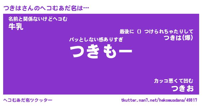 | ヒーロー風カッコイイあだ名 | 『スーパーツキハ』『ウルトラつきはマン』 |