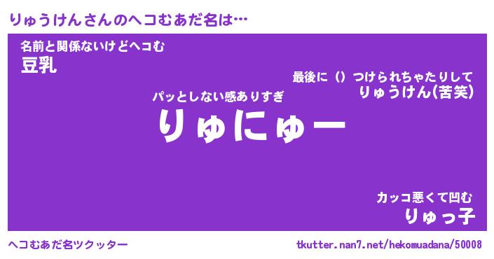 | 2回繰り返すあだ名 | 『りゅりゅ』『りりゅゅ』『ねばねば』 |