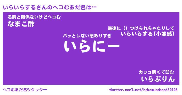 | ポケモン風あだ名 | 『イラチュウ』『イライダネ』 |