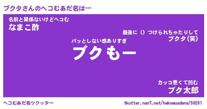| ヒーロー風カッコイイあだ名 | 『スーパーブクタ』『ウルトラブクタマン』 |