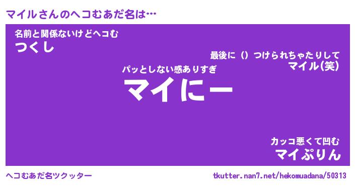 | 意味不明あだ名 | 『ペロリンマイル』『マイルフォーエバー』 |