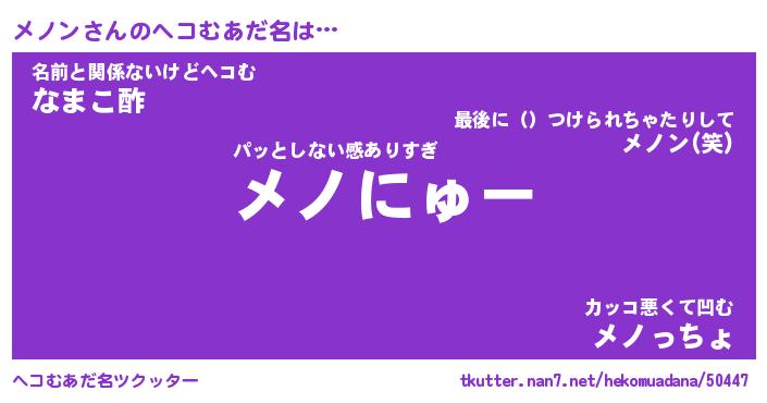 | ヒーロー風カッコイイあだ名 | 『スーパーメノン』『ウルトラメノンマン』 |