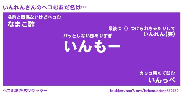 | 男性向けラノベタイトル風あだ名 | 『いんれんの憂鬱』 |