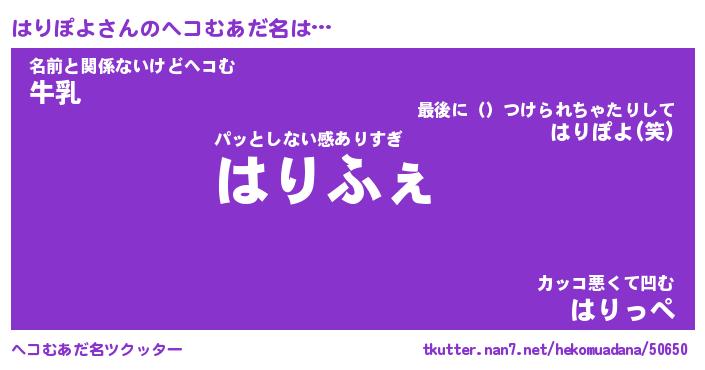 | 意味不明あだ名 | 『ペロリンはりぽよ』『永久保存はりぽよ』 |