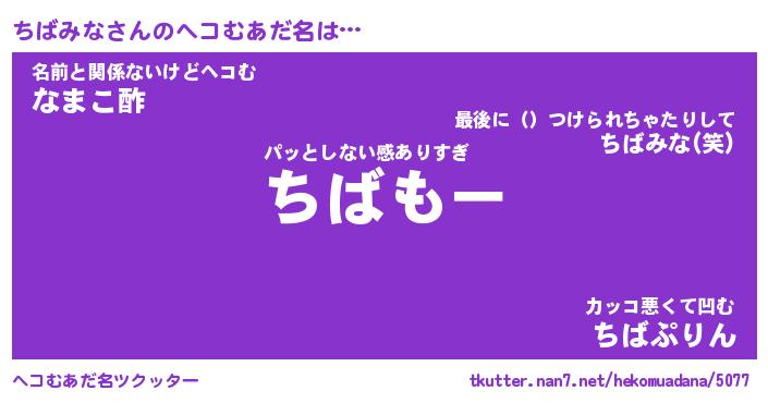 | 意味不明あだ名 | 『ペロリンちばみな』『永久保存ちばみな』 |