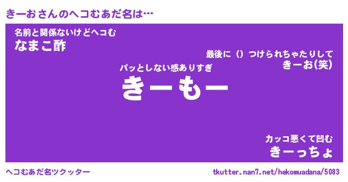 | 意味不明あだ名 | 『ペロリンきーお』『きーおフォーエバー』 |