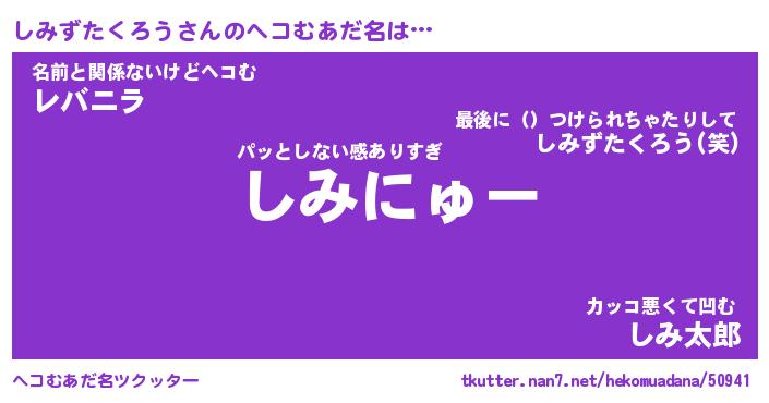 | ヒーロー風カッコイイあだ名 | 『スーパーシミズタクロウ』 |