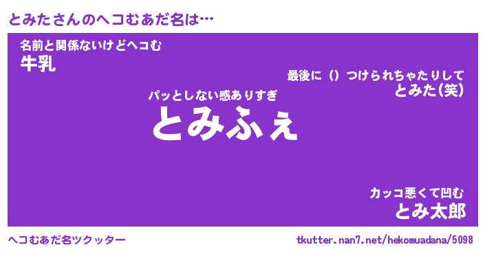 | ヒーロー風カッコイイあだ名 | 『スーパートミタ』『ウルトラとみたマン』 |