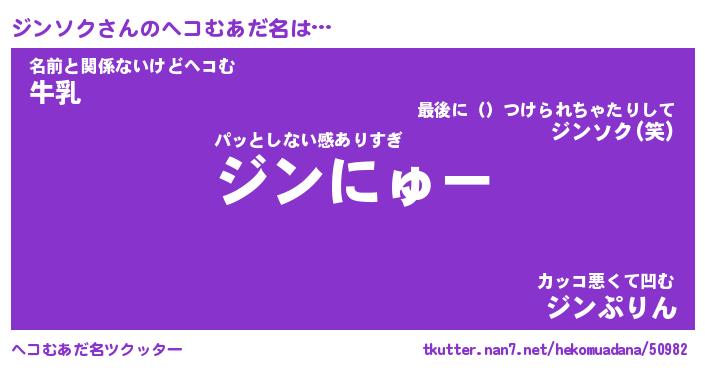 | ファンタジー風あだ名 | 『ジンフェル』『エターナルジンソクー』 |