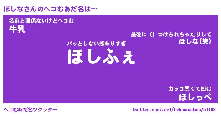 | ファンタジー風あだ名 | 『ホシフェル』『エターナルホシナー』 |
