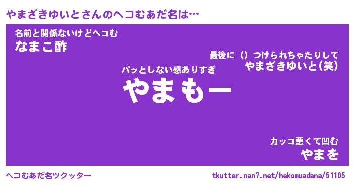 | 恥ずかしいあだ名 | 『プリティーやまざきゆいと』『やまちん』 |