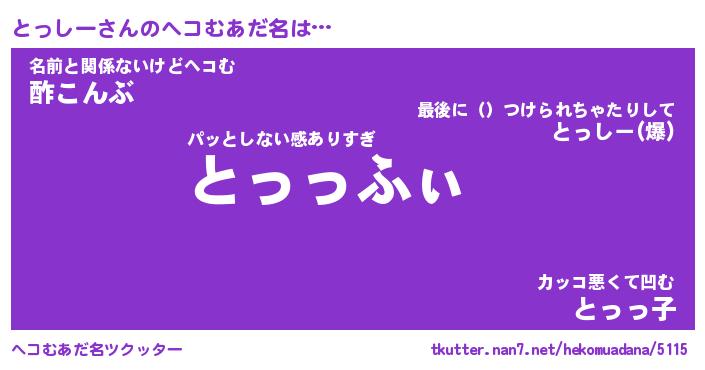 | 意味不明あだ名 | 『ペロリンとっしー』『永久保存とっしー』 |