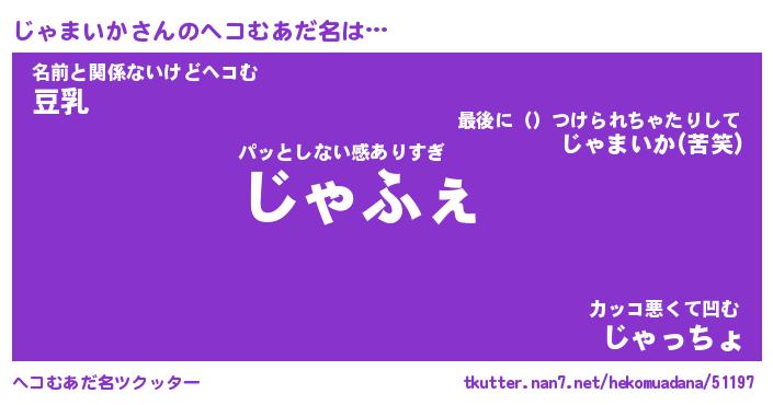 | 男性向けラノベタイトル風あだ名 | 『じゃまいかの憂鬱』 |