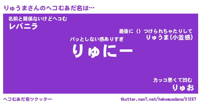 | 男性向けラノベタイトル風あだ名 | 『りゅうまの憂鬱』 |