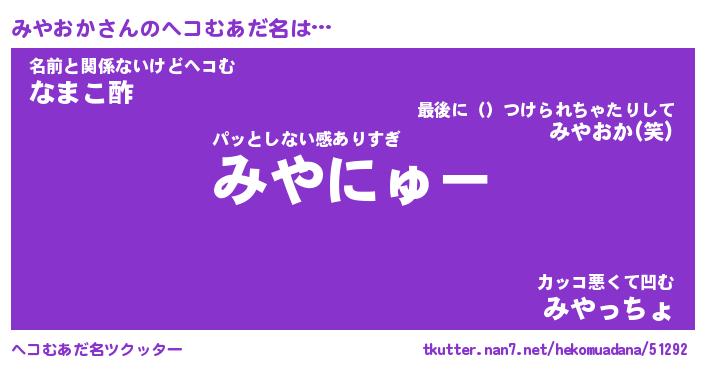 | 男性向けラノベタイトル風あだ名 | 『みやおかの憂鬱』 |