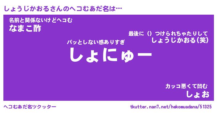 | 意味不明あだ名 | 『ペロリンしょうじかおる』 |